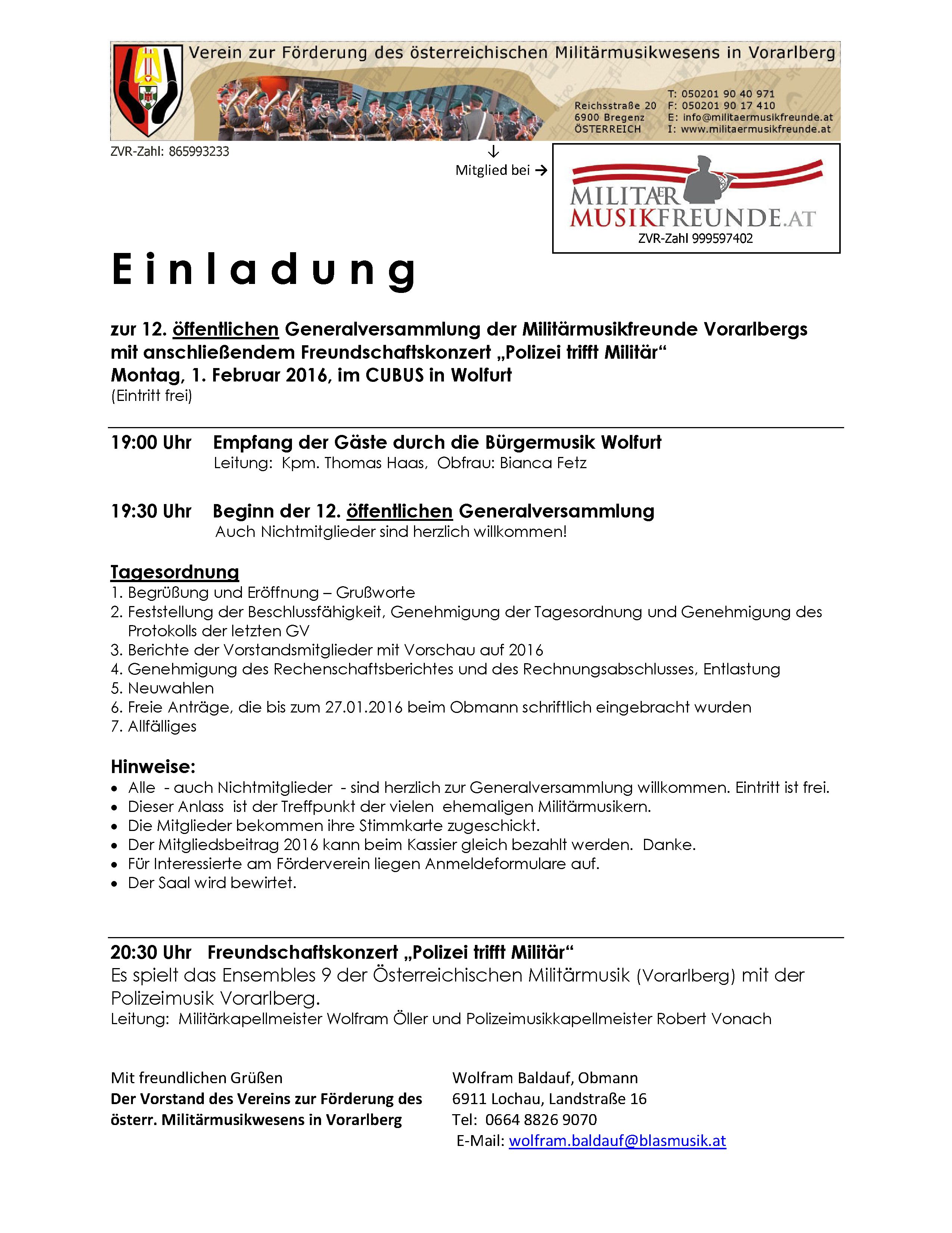Einladung zur Generalversammlung 2016