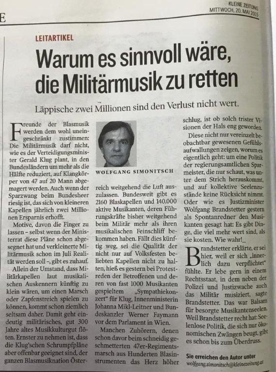 Leitartikel vom 20.5.2015 (Kleine Zeitung)