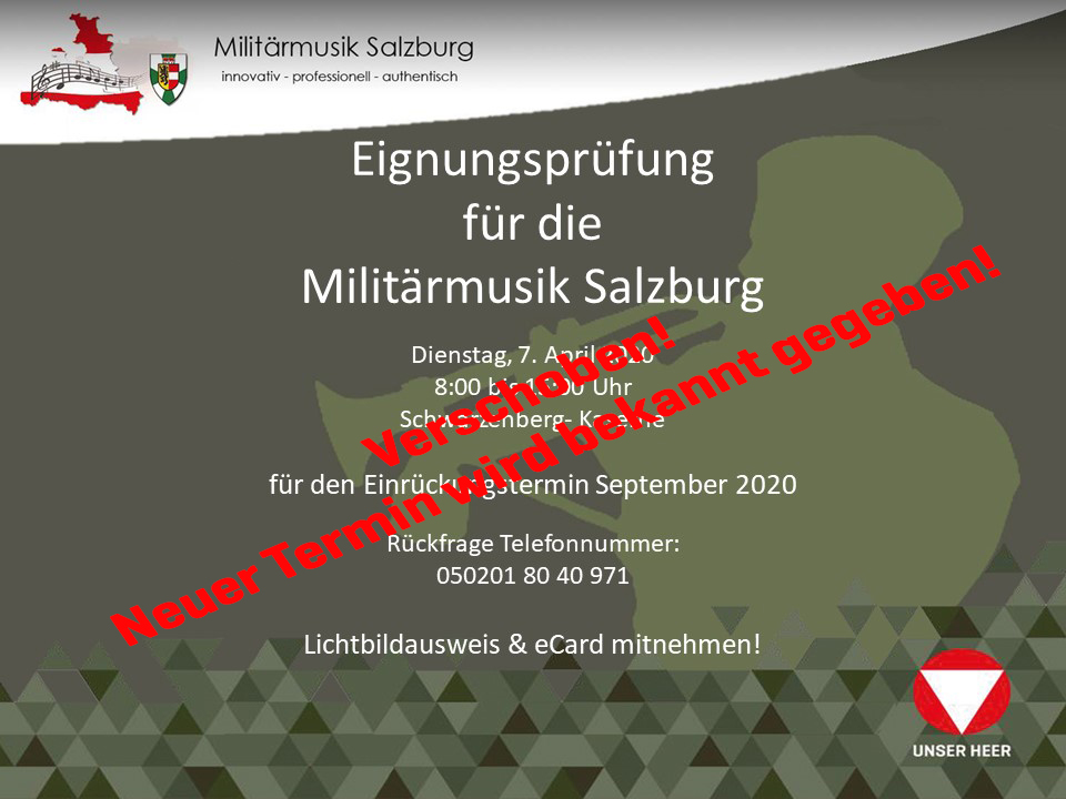 Verschoben: Eignungsprüfung für die Militärmusik Salzburg